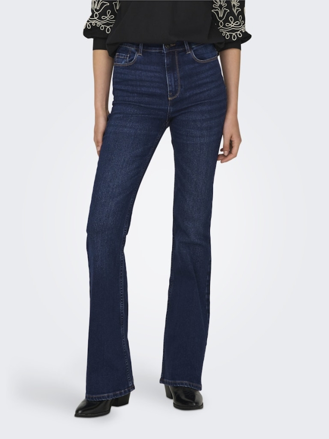 Deze jeans is een flare model en sluit hoog. 5 Pockets, met een vertrouwde portie stretch. Basic, tijdloos en eindeloos te combineren.