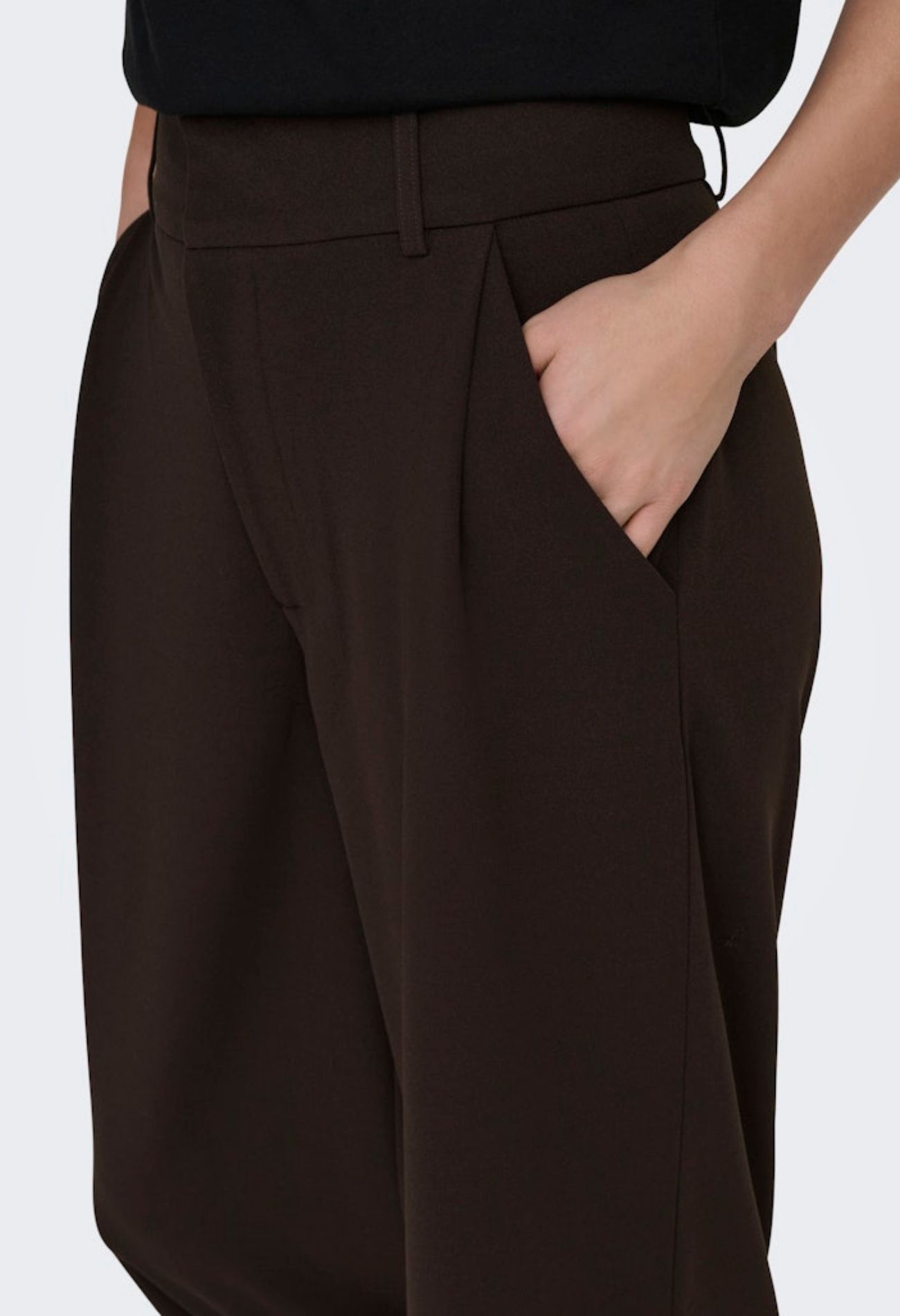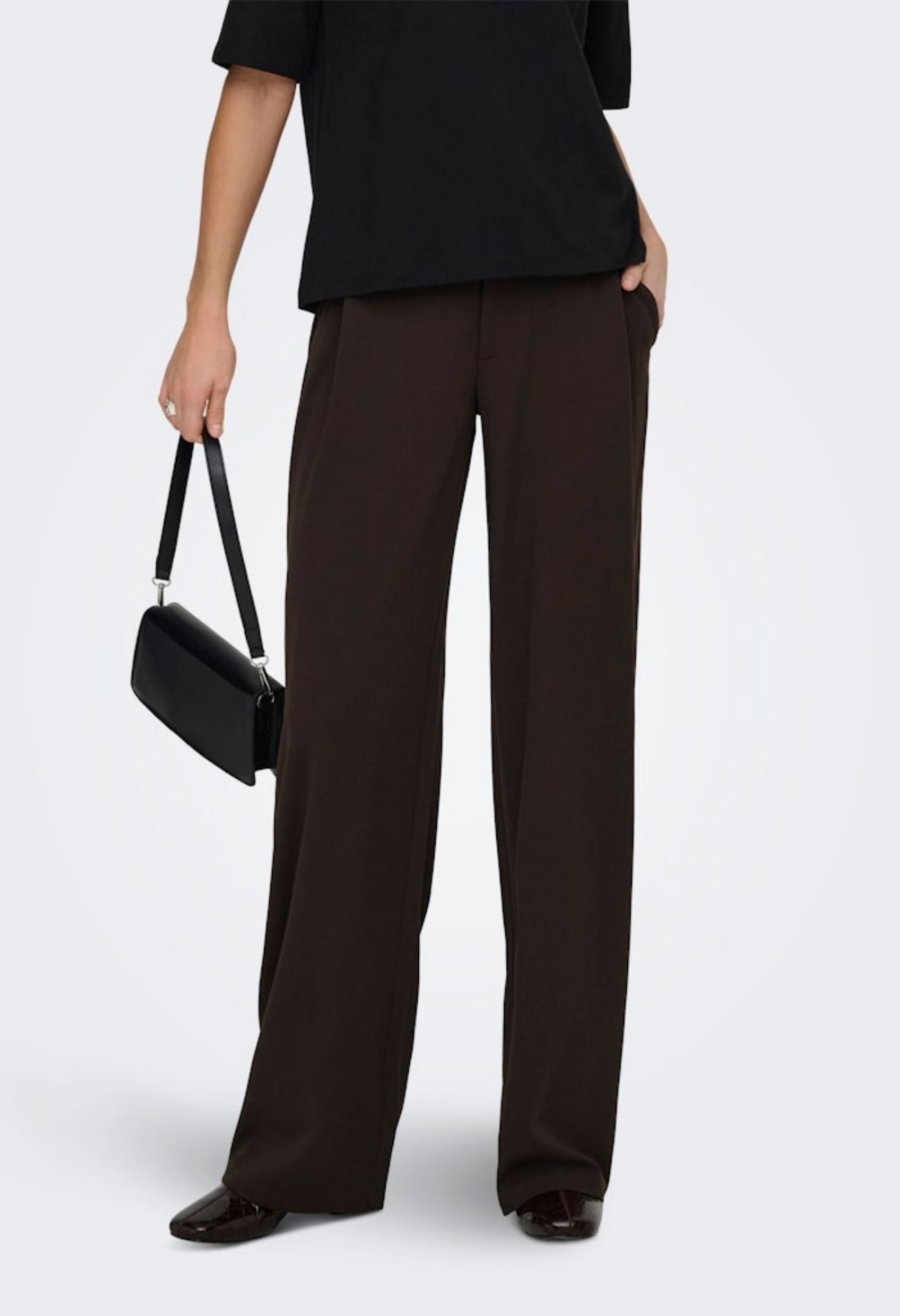 Zwarte basis pantalon met wijde pijpen. Deze broek sluit met een rits en dubbele haak sluiting en heeft twee comfortabele steekzakken. Ga jij voor alltime favourite zwart of ga jij voor cabernet wijnrood?
