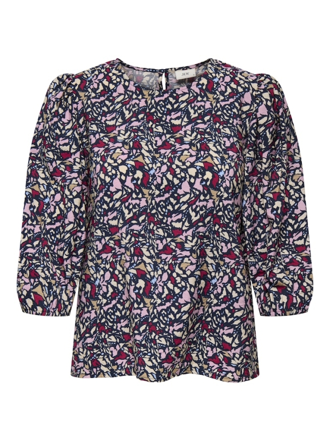 Fraaie multicolor top van JDY met driekwart ballonmouw. Deze top valt wat wijder uit en heeft een ronde hals met achterop een druppeluitsparing met knoopje. Leuk te dragen op een rok of gewoon casual op een denim.