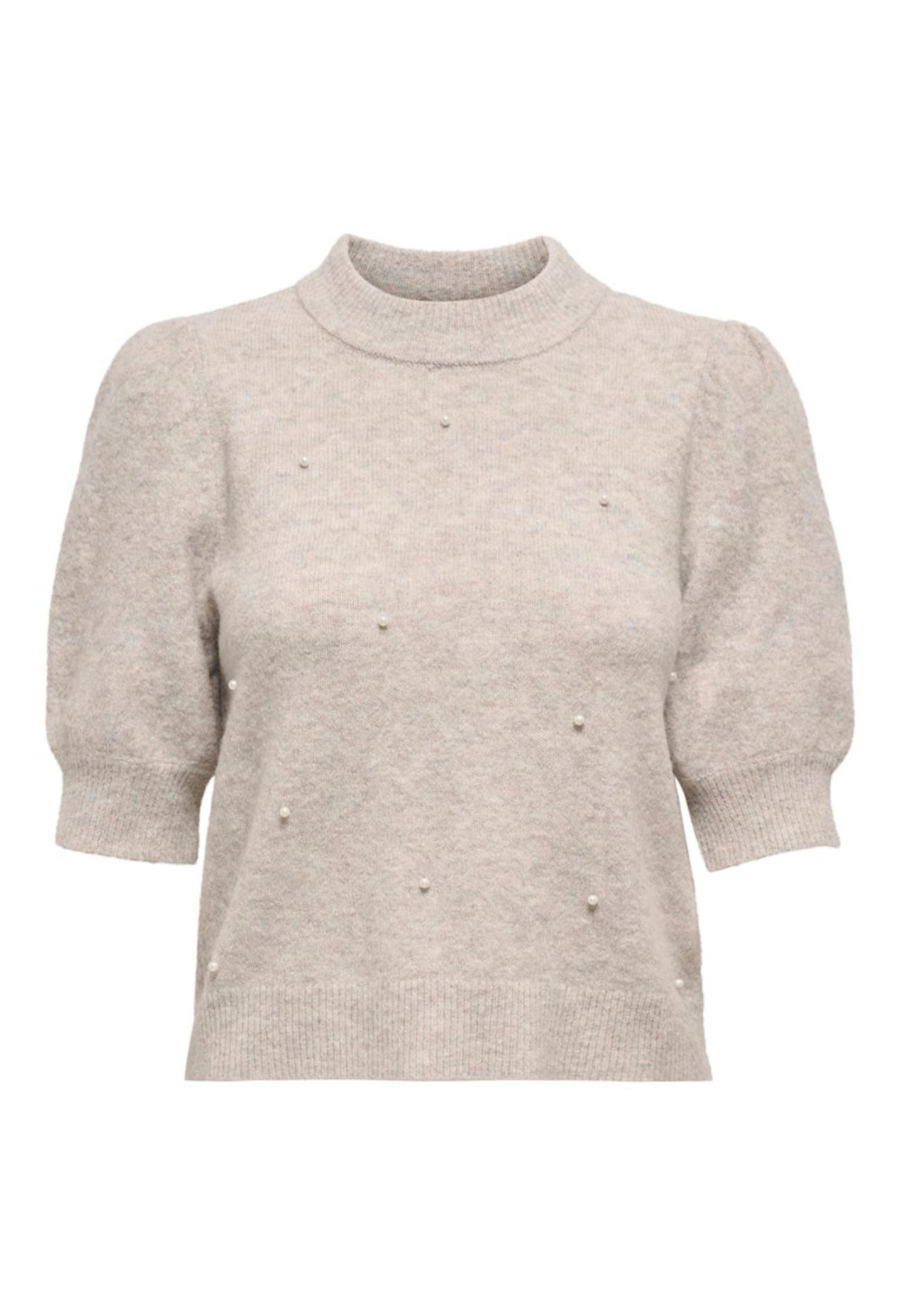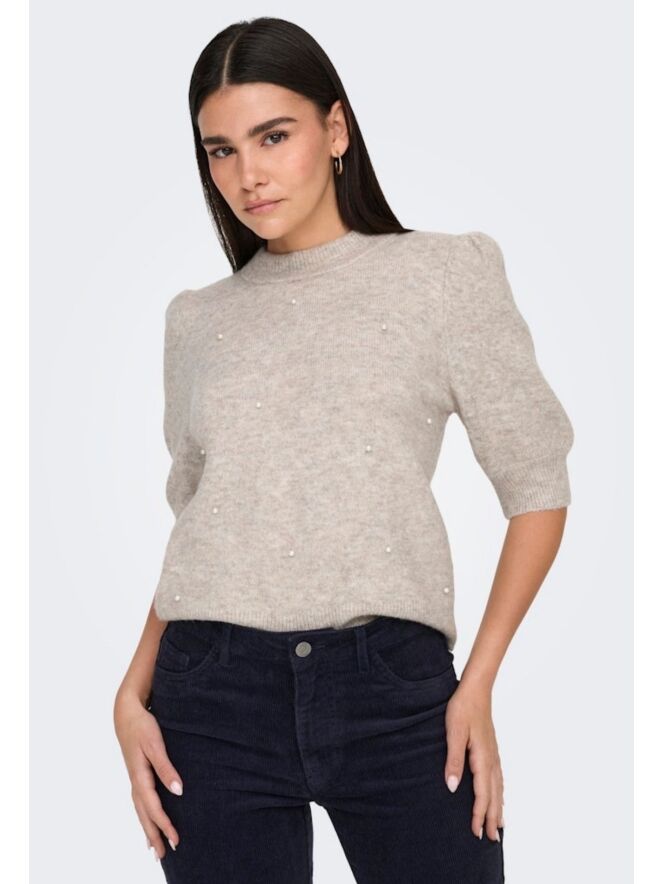 Heerlijke pullover met op de voorkant opgestikte pareltjes voor een leuk speels effect! Makkelijk te combineren met jeans, rokken noem maar op! Let op, deze trui heeft een halve mouw!
