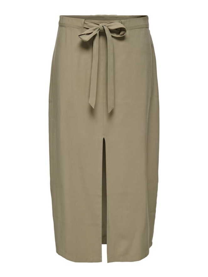 Nette rok met blinde rits in de zij. Deze rok is lang en heeft een lengte tussen kuit en enkels. Met mooie split aan de voorkant en striksluiting. Combineer met een kleurrijke sneaker en T-shirt voor een hippe trendy look.