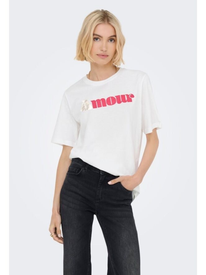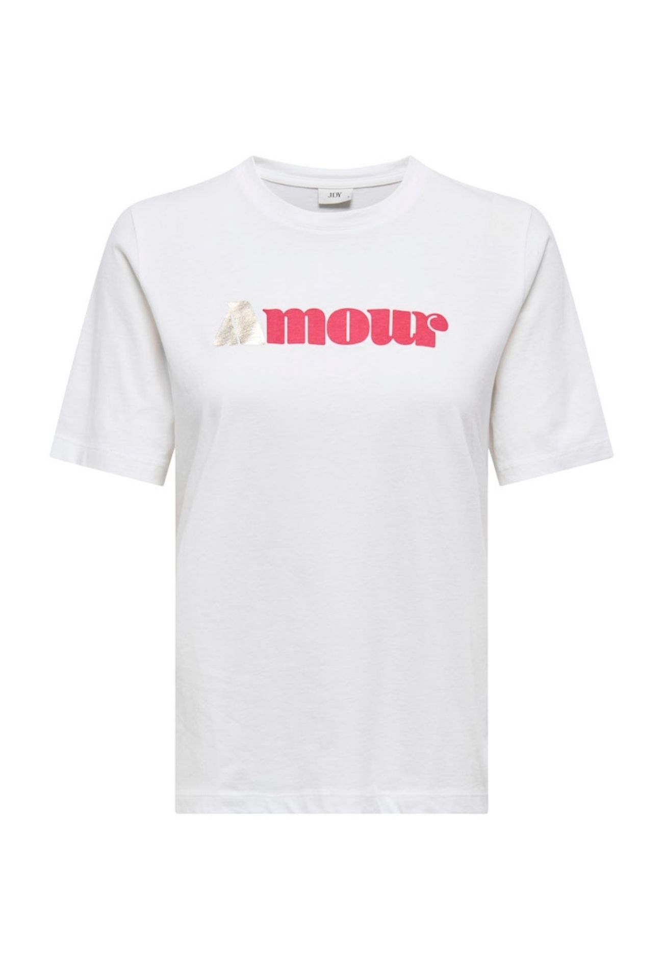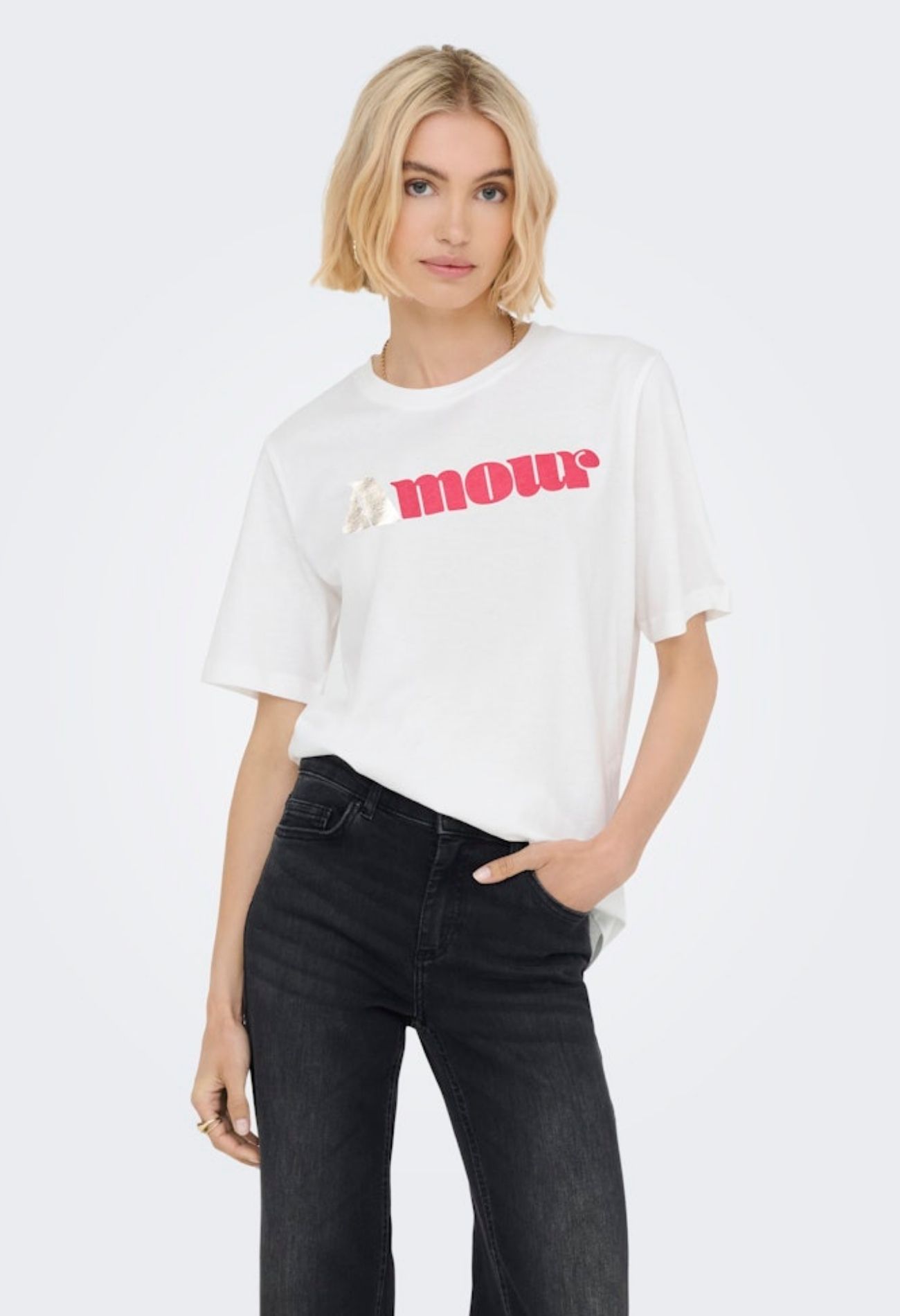 Amour of Heart? Wij vinden ze beide leuk! Gewoon een wit T-shirt met trendy opdruk. Alles is liefde. Liefde voor jou van ons. Welke kies jij?