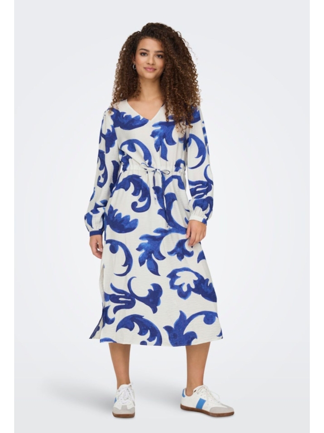 Dress to impress! Wanneer je deze jurk draagt, is niets anders meer nodig om jou te laten stralen! Deze lange jurk met opvallende blauwe art print zorgt voor een verfrissende look. Naast dat de jurk een mega trendy uitstraling heeft, is de jurk ook nog eens comfy door de soepel vallende stof!