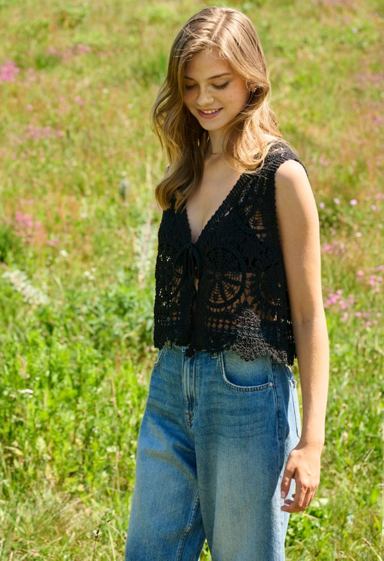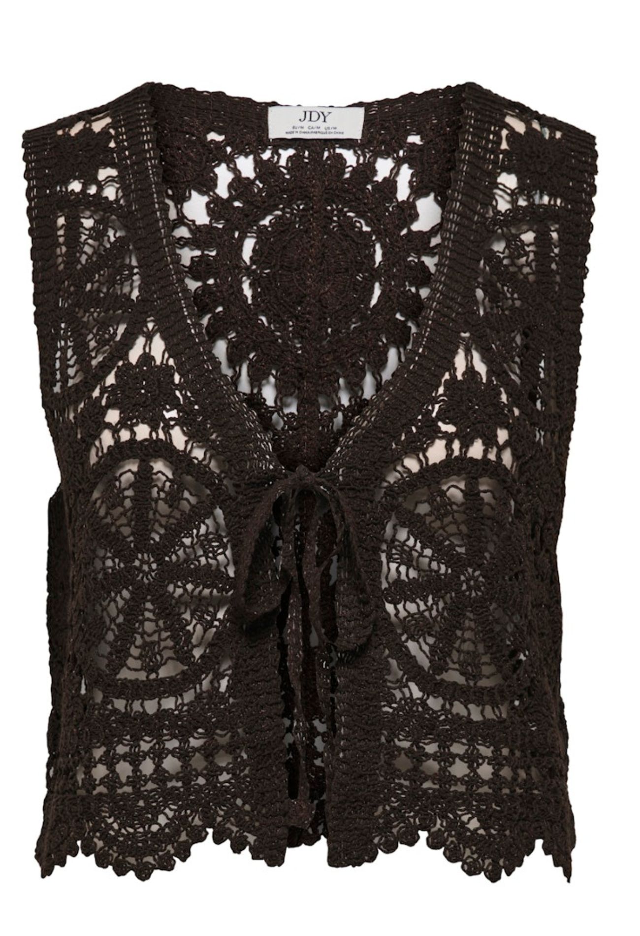 Dit ontzettend leuke chrocket giletje heeft een open patroon met mooie V-hals en kan gesloten worden met een striksluiting. Draag het over een T-shirtje of trek het over je bikini top als je even de hort op moet. Voor beachy en boho looks zit je met dit item meer dan goed!