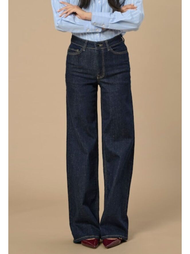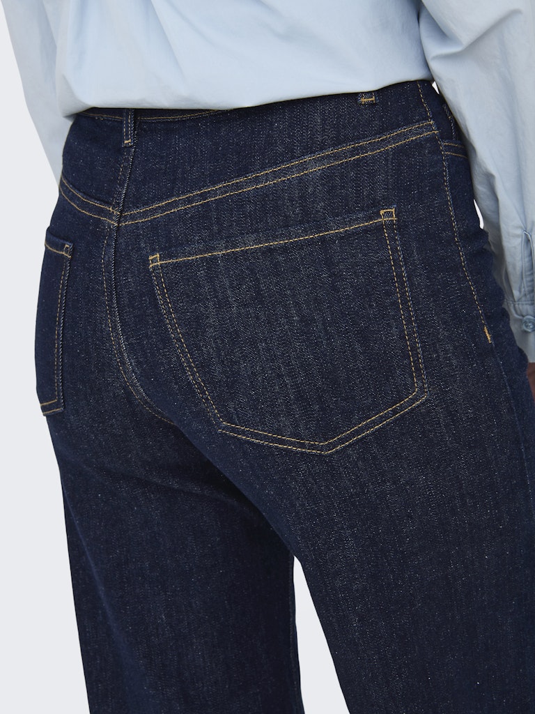 Prachtige high waist spijkerbroek van JDY. Deze denim heeft een wijde pijp, 5 pockets en nog steeds een redelijke dosis elasticiteit. De wassing is echt diep donkerblauw en dus een echte winters jeans die niet in je garderobe mag ontbreken!