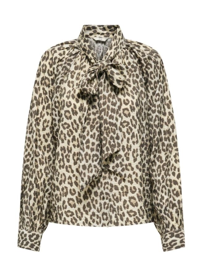 Een statement maak je met deze panterprint blouse! De verfijnde gouden knoopjes en het strikdetail rond de hals geven dit item een elegante twist. Of je nu gaat voor een casual-chique look of juist een gedurfde outfit, deze blouse is altijd een eyecatcher. Perfect te combineren met een dark denim jeans (15354213) voor een krachtige, modieuze uitstraling!