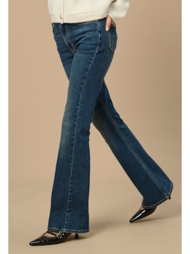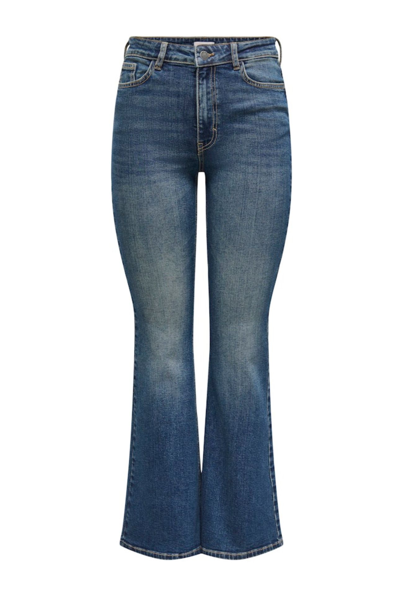 Deze high waist flare jeans Kathy van JDY heeft veel stretch in de stof en een mooie donkere wassing.