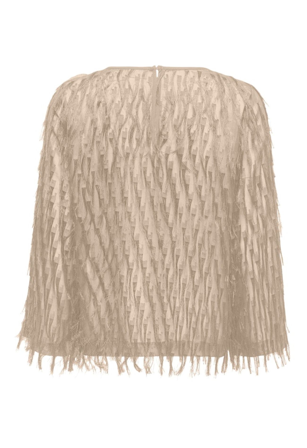De speelse franjes op de semi-transparante stof dansen subtiel mee bij elke beweging en geven je outfit direct een feestelijke touch. Perfect voor een avond uit of een speciale gelegenheid. Combineer met een zwarte broek of rok voor een stijlvolle, edgy look. Met deze top steel je gegarandeerd de show!
