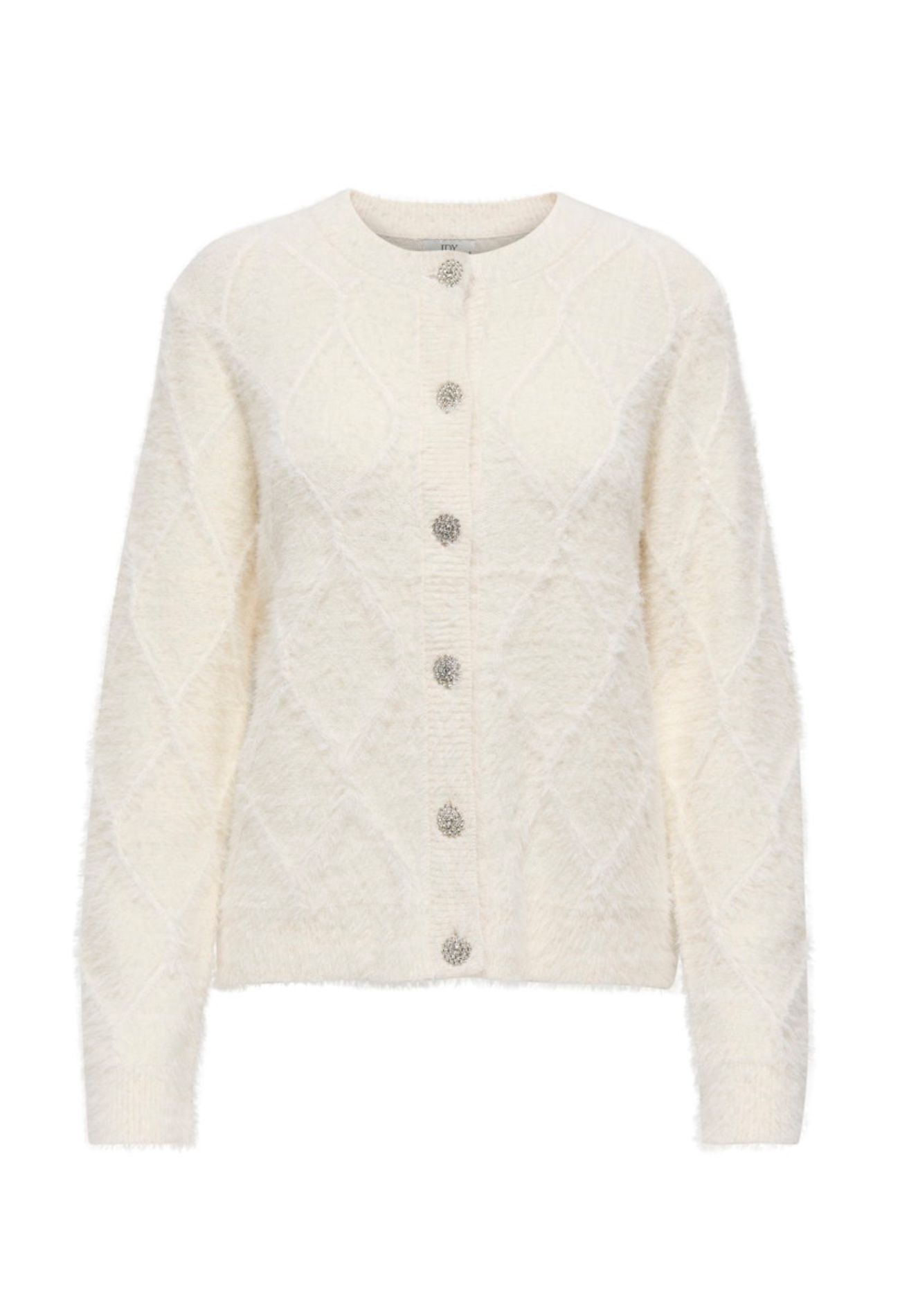 Dit ontzettend zachte vest van JDY heeft een ruitpatroon in het featheryarn breimotief. De knopen geven dit vest een sjiecke uitstraling.