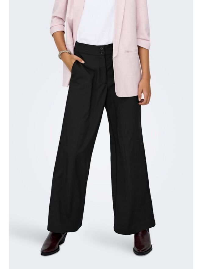 Fraaie pantalon van JDY. Deze broek is een wide fit en sluit hoog in de taille met rits en een dubbele knoop. Basis item welke eindeloos is te combineren met T-shirts, tops maar ook sweaters en truien.