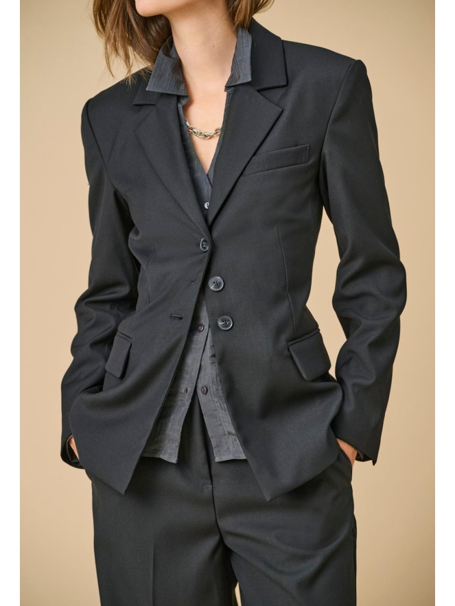 Elegante blazer met klasieke snit. Met button down revers kraag en een getailleerde pasvorm. Deze blazer heeft 2 sier klepzakken.