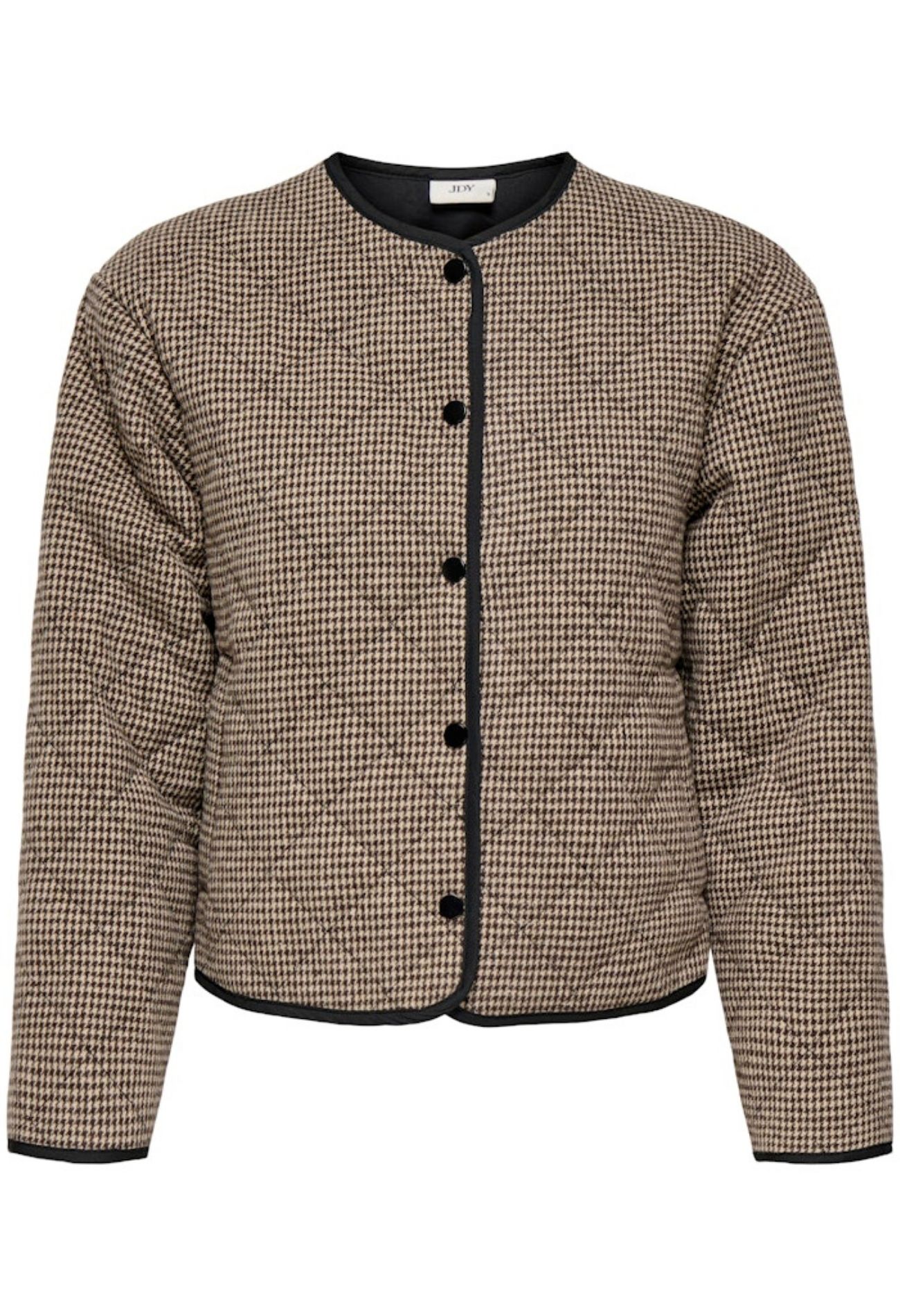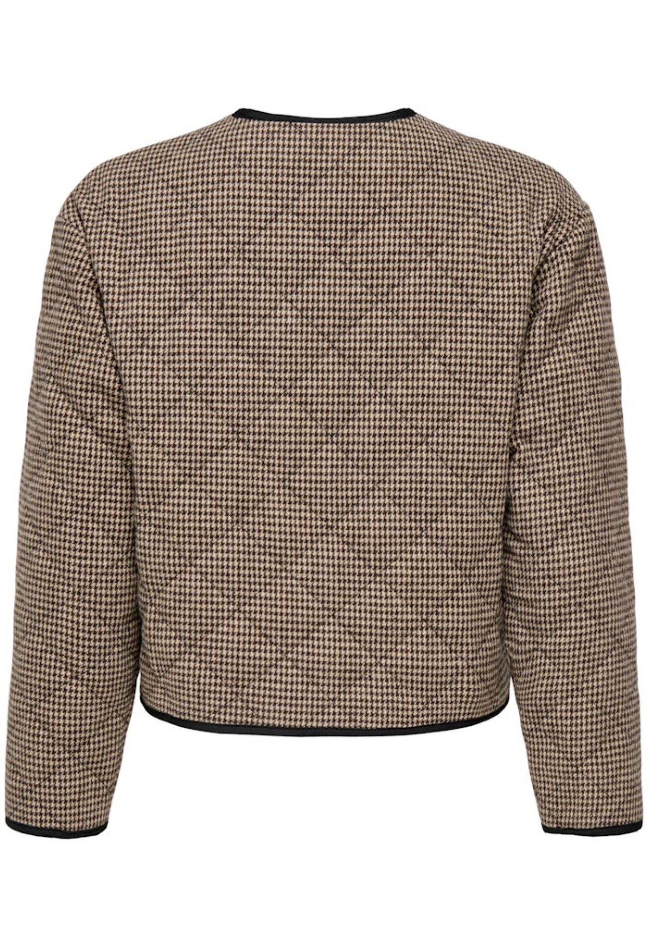 Sjiecke dames shacket in een fijne bruine pied de poule print. Dit jasje draag je eenvoudig over een effen item. Mix en Match!
