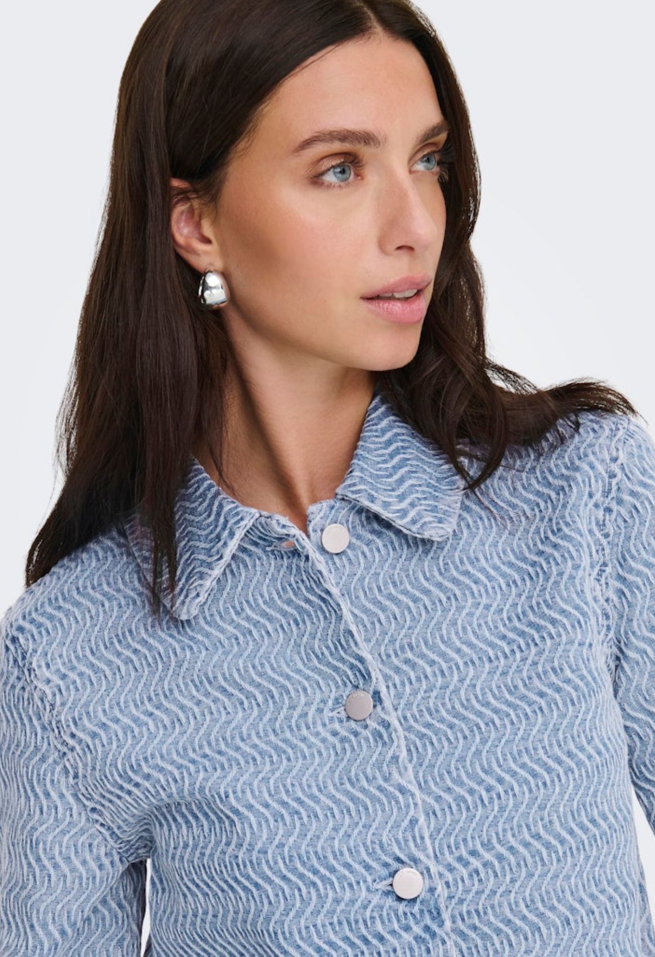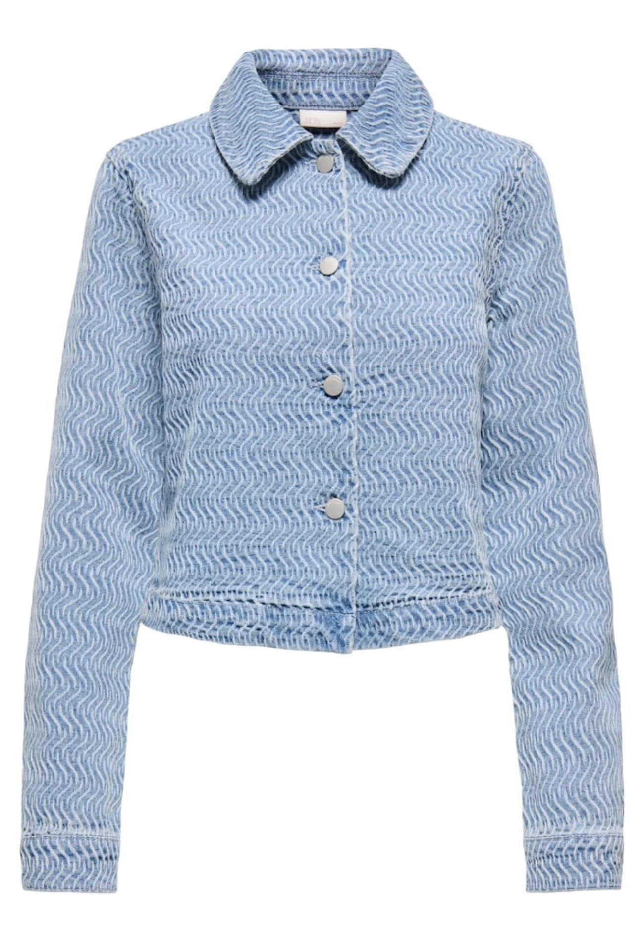 Prachtig denim spijkerjack met een golvend patroon op de stof. Dit spijkerjasje in frisse voorjaarswassing past perfect bij de wide fit jeans met art.nr. 15362001.