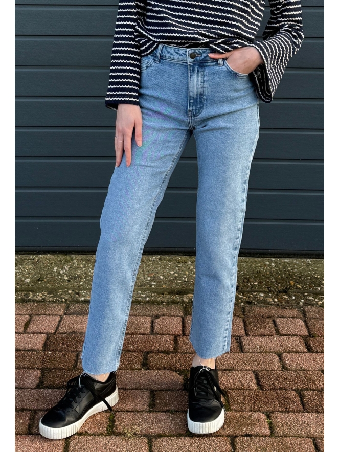 Mooie jeans van JDY in een frisse voorjaars wassing! Deze 5-pocket is een high waist met straight fit. Zonder afwerking aan de onderkant met een lengte tot op de enkel. Tijdloos in kleur en model!!