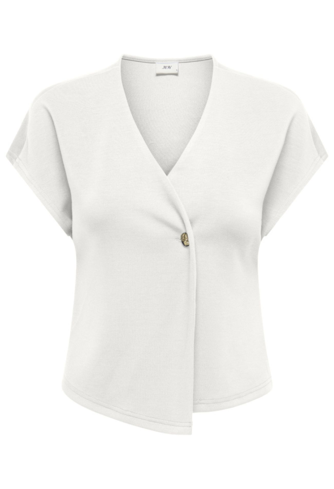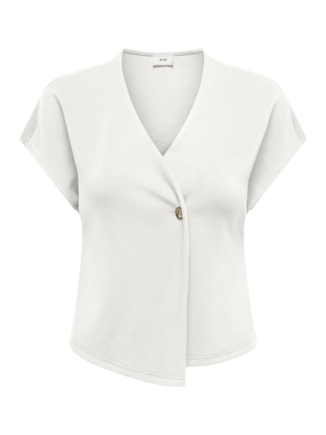 Deze elegante top straalt eenvoud en verfijning uit. De vrouwelijke V-hals met subtiele knoopsluiting (1 knoop) geeft het ontwerp een stijlvolle en moderne touch. De korte mouwen zorgen voor een luchtige uitstraling, waardoor de top perfect is voor zowel warme dagen als gelaagde outfits.