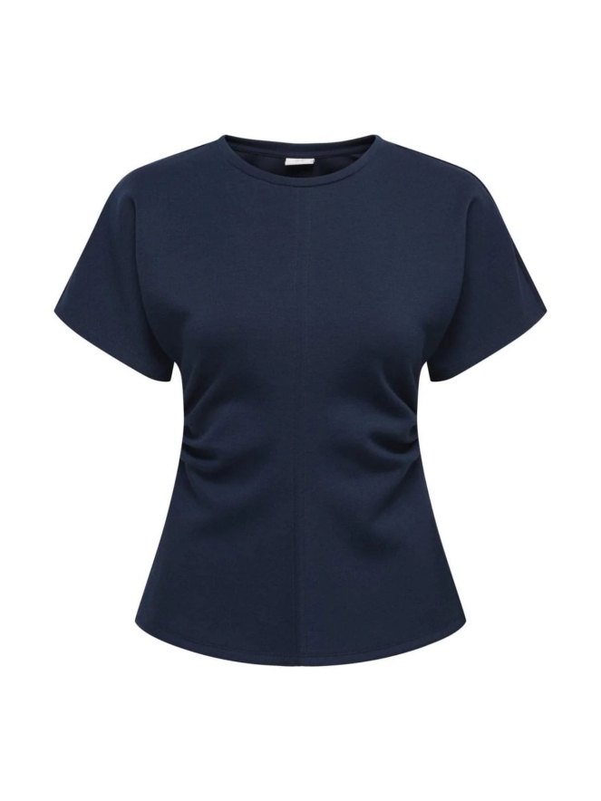 Deze chique top combineert elegantie met een flatterende pasvorm. De ronde hals geeft een klassieke uitstraling, terwijl het subtiele plooitje in de taille de top een getailleerd effect en een mooi silhouet geeft.