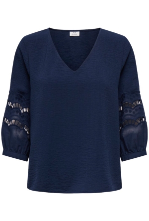 Deze elegante top van JDY is een perfecte mix van vrouwelijkheid en verfijning. De top is afgewerkt met subtiele broderie details die zorgen voor een luxe en romantische uitstraling. Aan de voorzijde zitten speelse strikjes, waarmee je de top stijlvol kunt sluiten en een persoonlijke touch geeft aan je look.