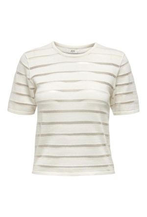 Voeg een vleugje glamour toe aan je garderobe met deze stijlvolle trui van JDY. De halve mouwen maken hem perfect voor de overgangsseizoenen, terwijl de subtiel door de stof verweven pailletten zorgen voor een sprankelend effect bij elke beweging.