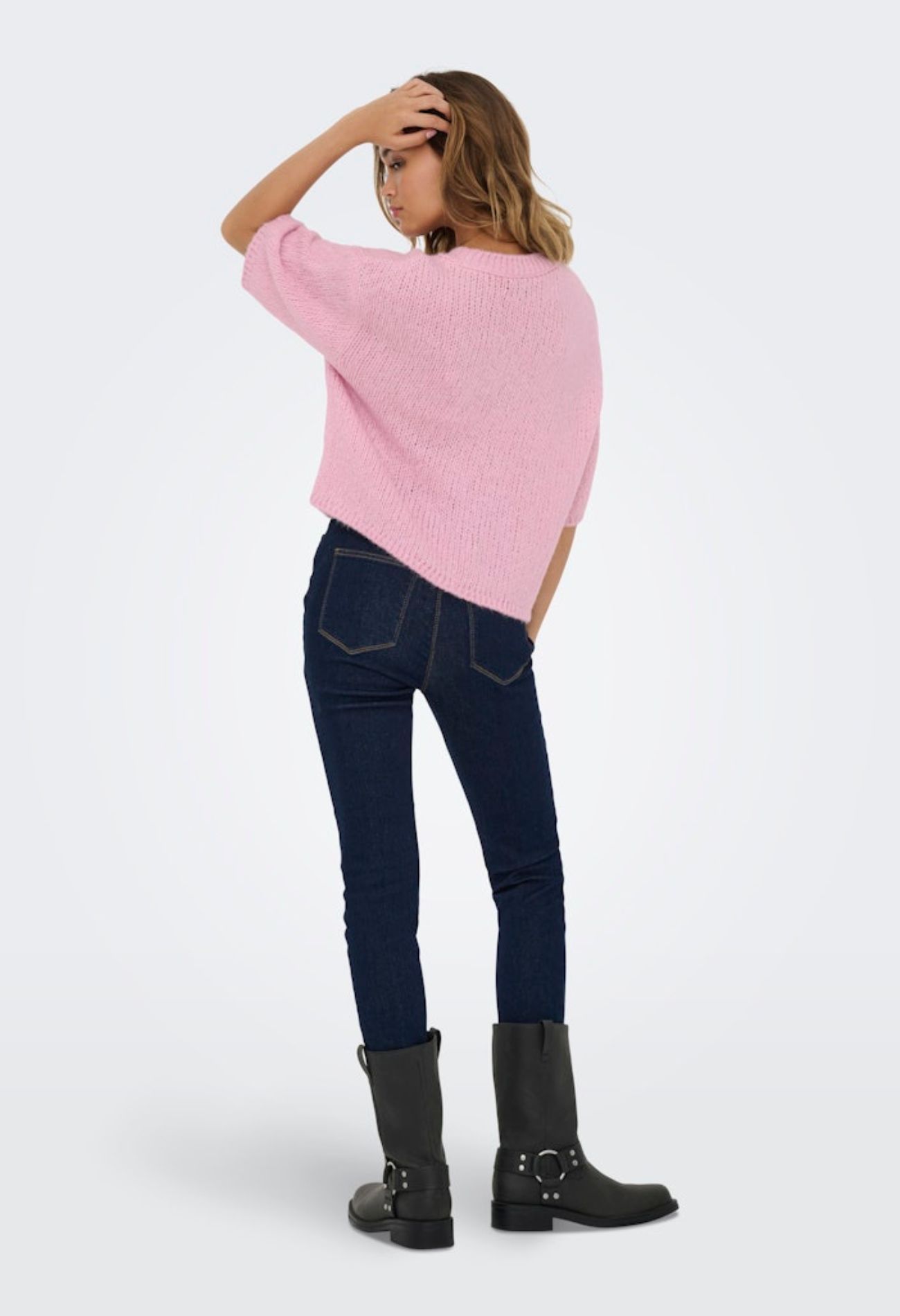 Warme grof gebreide trui van JDY. Deze trui heeft korte mouwen. Extra trendy om er een shirtje van kant onder te dragen voor een super hippe look!