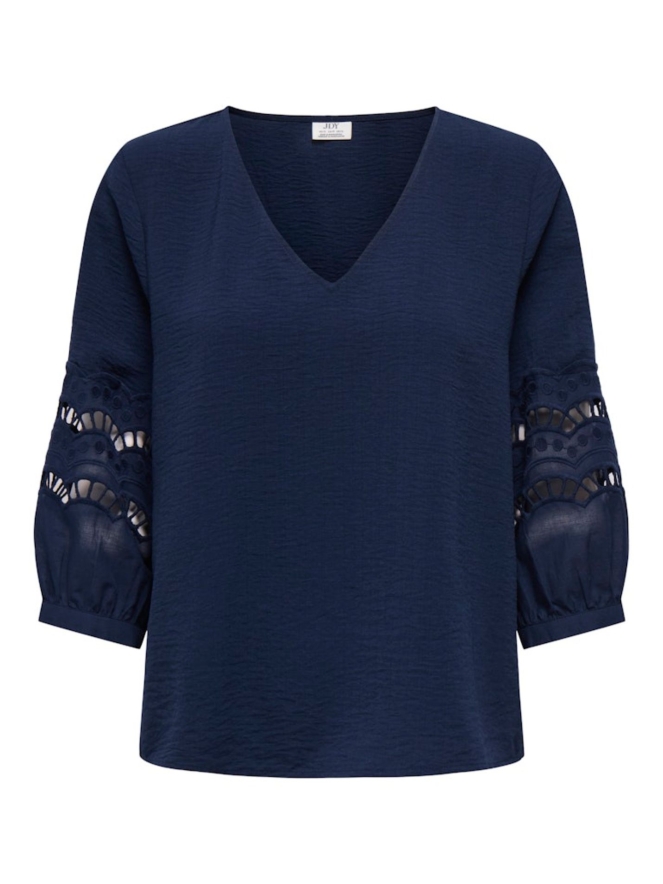 Voeg een verfijnde touch toe aan je outfit met deze elegante top van JDY. De driekwartmouwen zorgen voor een stijlvolle, tijdloze look, terwijl de subtiele lace uitsnede in de mouwen een delicate en vrouwelijke twist geeft.