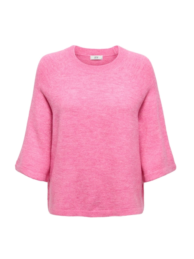 Pink ladies opgelet! Deze fijn gebreide trui in fris rose heeft een driekwart mouw en heeft een wijde fit. Leuk te combineren met een mooie jeans!