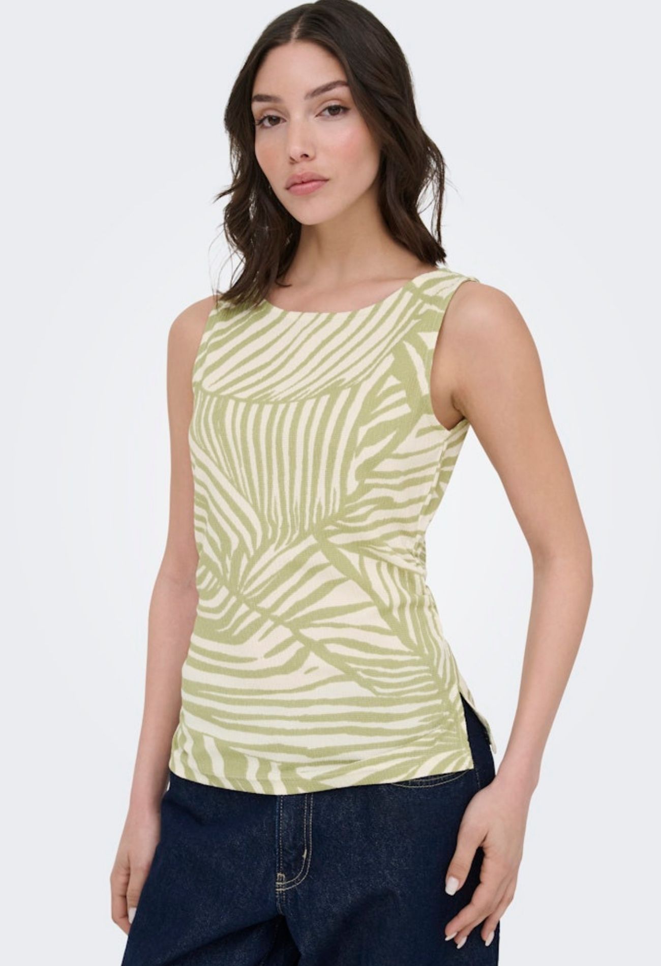 Ga voor een frisse, moeiteloze look met deze zomerse mouwloze top. Gemaakt van een luchtige crinkle stof die niet alleen comfortabel draagt, maar ook een subtiele, speelse textuur toevoegt. Het omsluitende model sluit mooi aan op het lichaam en zorgt voor een vrouwelijke, flatterende pasvorm. De speelse strepen geven de top een vrolijke en moderne uitstraling.