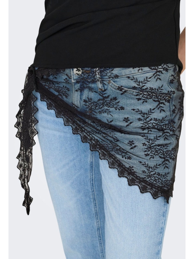 Helemaal hip en trendy dit seizoen is een sjaaltje van kant wat je zowel als sjaaltje of als versiersel om je middel over je broek kunt dragen!