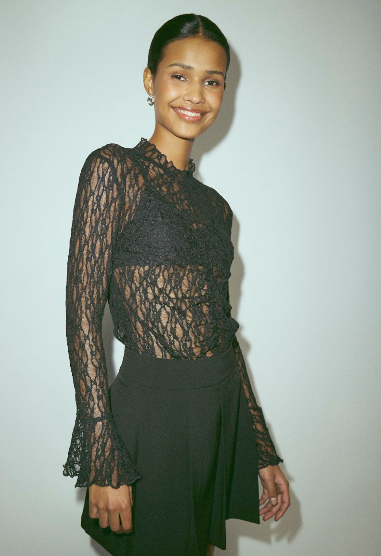 Prachtige kanten top welke jouw outfit helemaal afmaakt! De mouw is onderaan uitlopend en de top heeft een klein opstaand randje bij de hals. Helemaal leuk om onder een blazer met korte mouwen te dragen! Hot en trendy dit seizoen!
