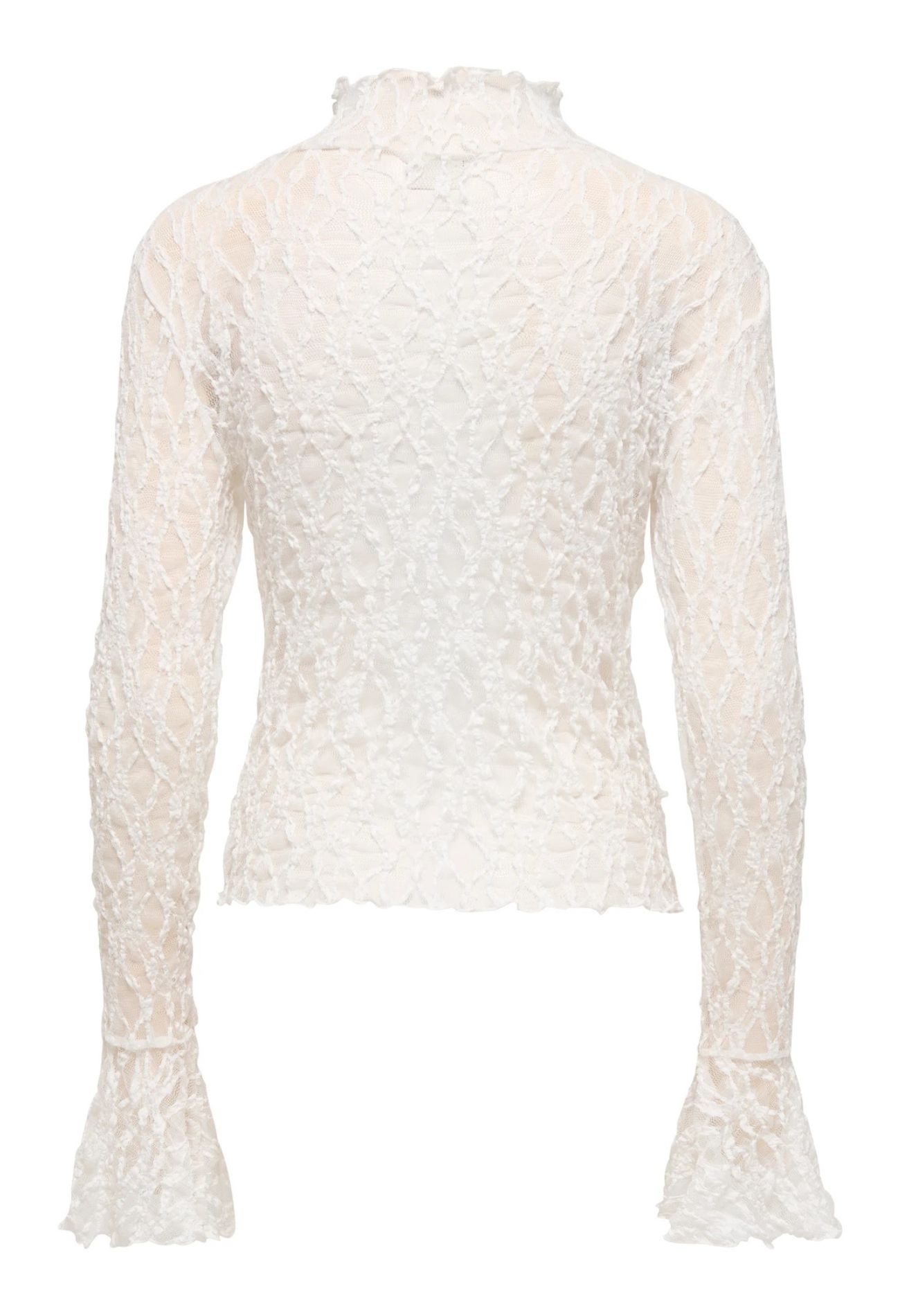 Prachtige kanten top welke jouw outfit helemaal afmaakt! De mouw is onderaan uitlopend en de top heeft een klein opstaand randje bij de hals. Helemaal leuk om onder een blazer met korte mouwen te dragen! Hot en trendy dit seizoen!
