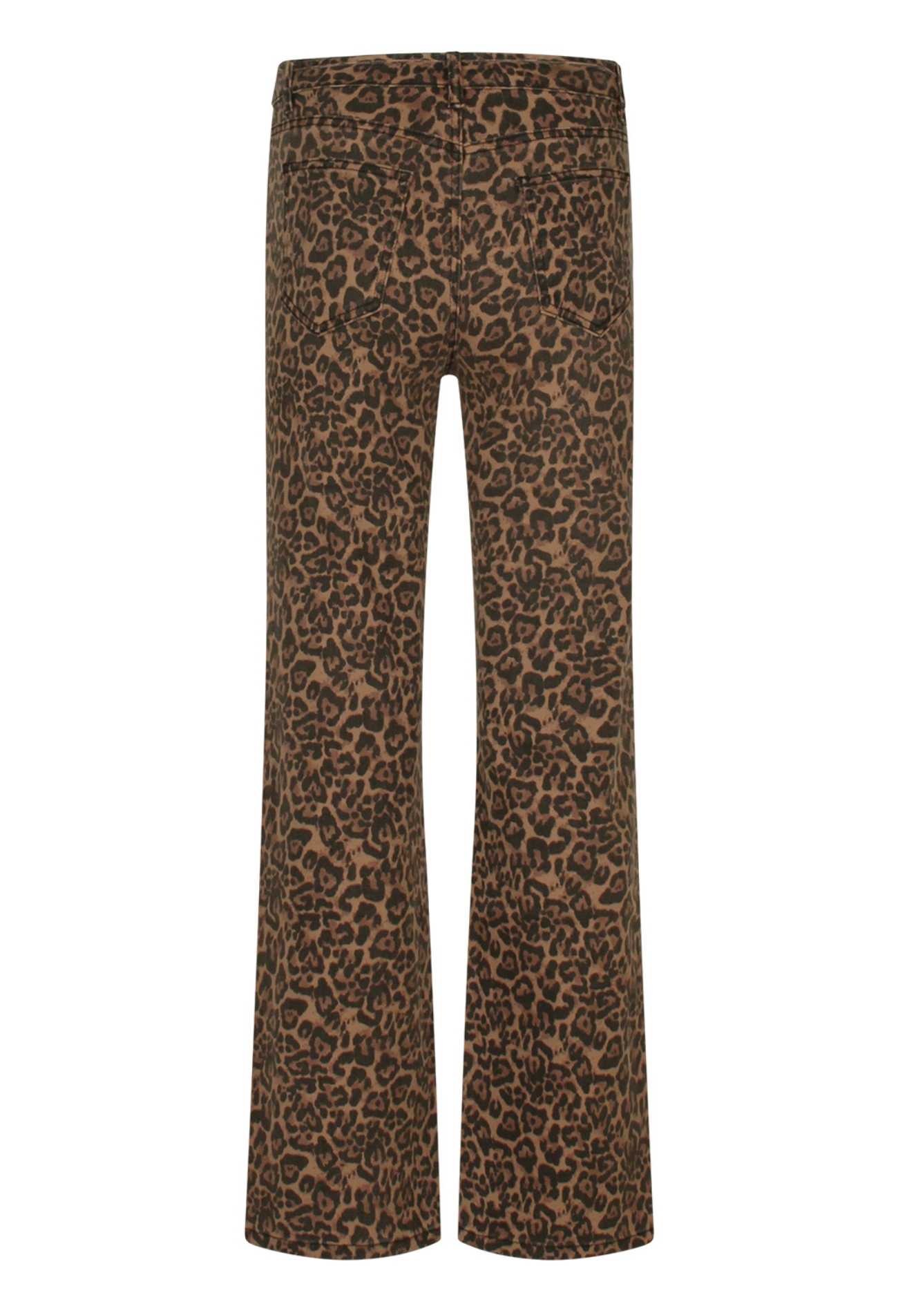 Rechte pijp, panterprint, 5 pockets met een bijpassend strikceintuurtje in dezelfde stijl. Leuke opvallende broek met een mooie panterprint met een fijne dosis stretch. High waist.
