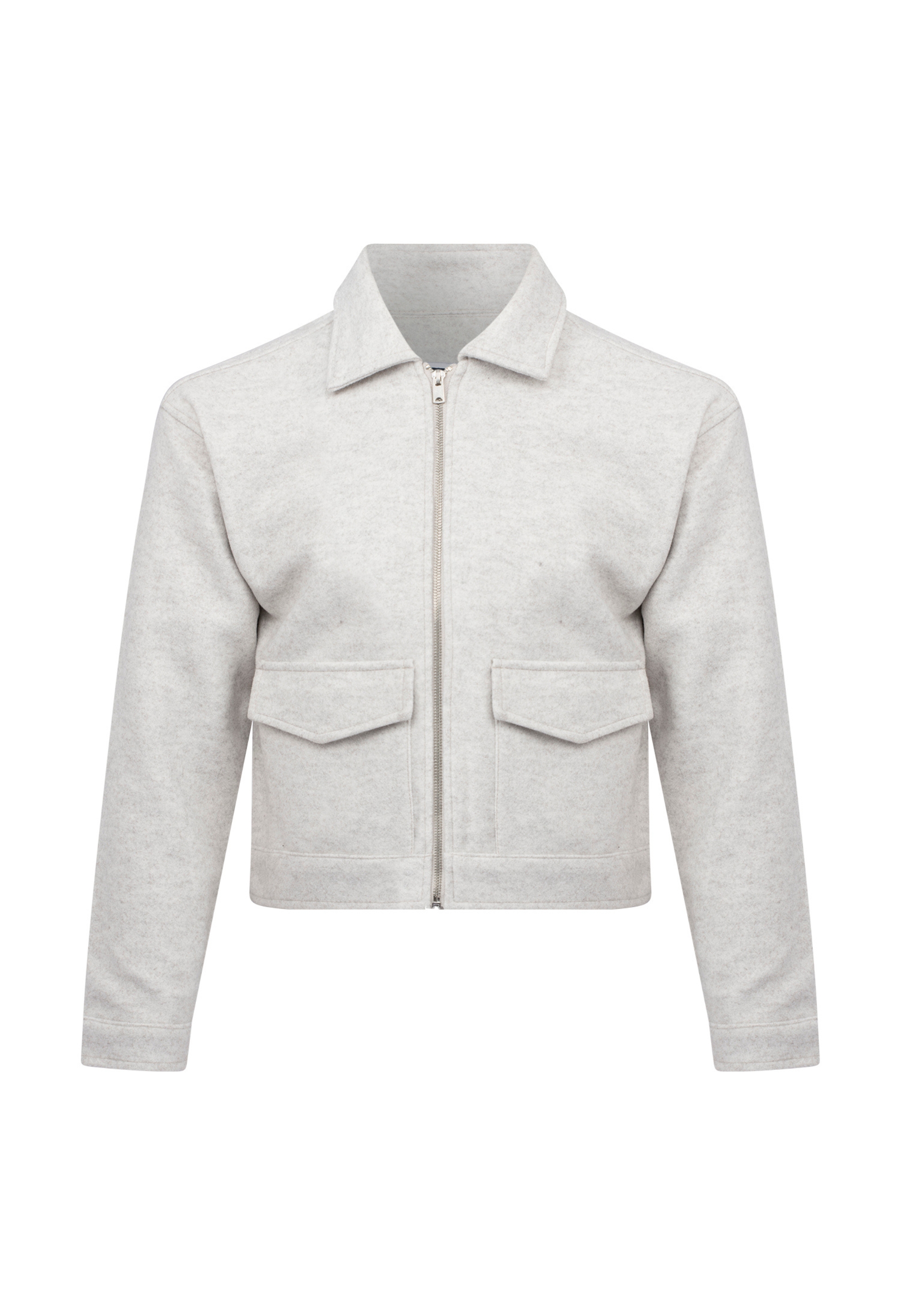 Dit vestjack heeft een viltige wollook en daardoor een luxueuze uitstraling. Met twee mooie klepzakken voorop geeft dit een eigentijdse neutrale look.