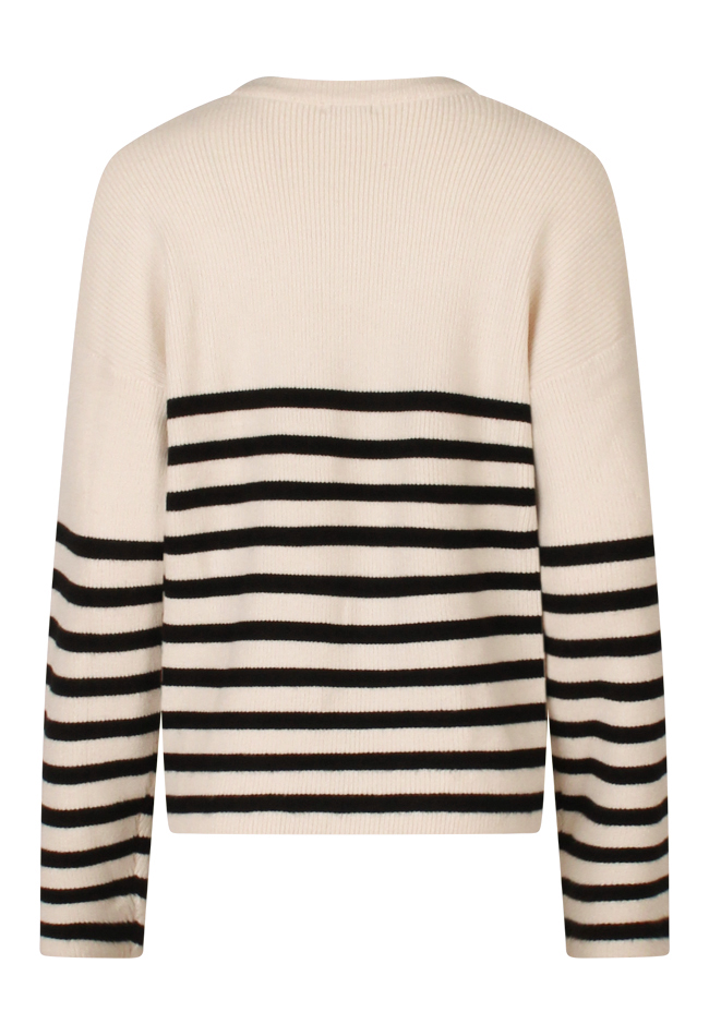 Deze dames sweater is een echte eyecatcher! Het speelse streeppatroon geeft een frisse en casual look, terwijl de strik van parels op de voorkant zorgt voor een trendy en vrouwelijke touch. Gemaakt van een comfortabele stof die zacht aanvoelt, perfect om stijlvol én comfortabel te dragen. Combineer hem met een jeans voor een nonchalante outfit of met een rok voor een verrassend modieuze look.