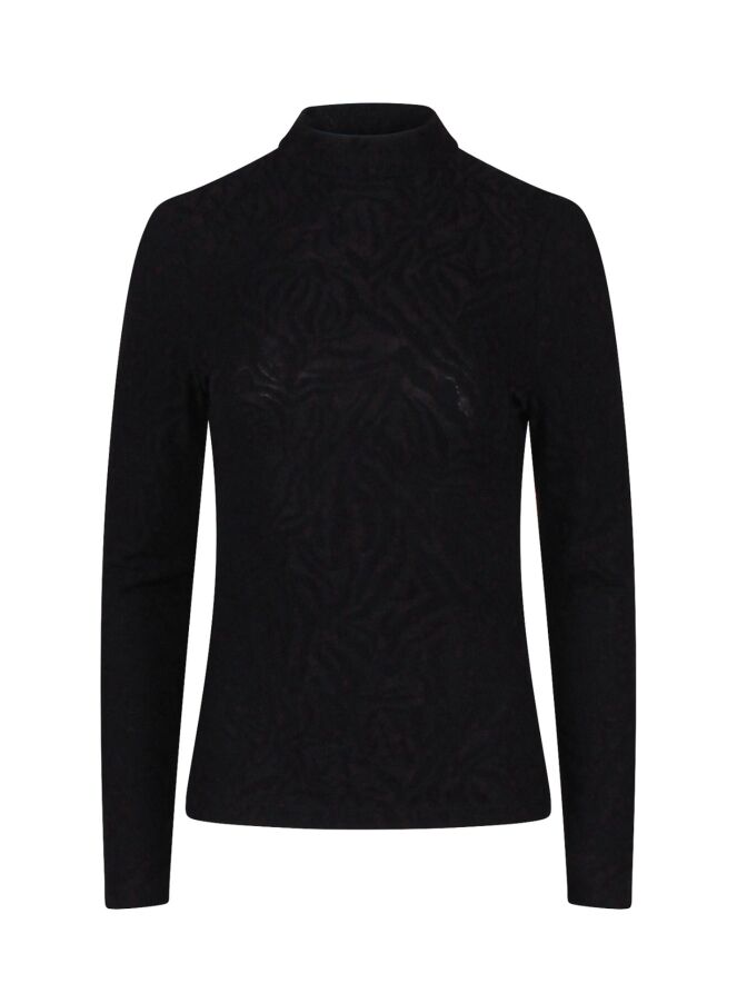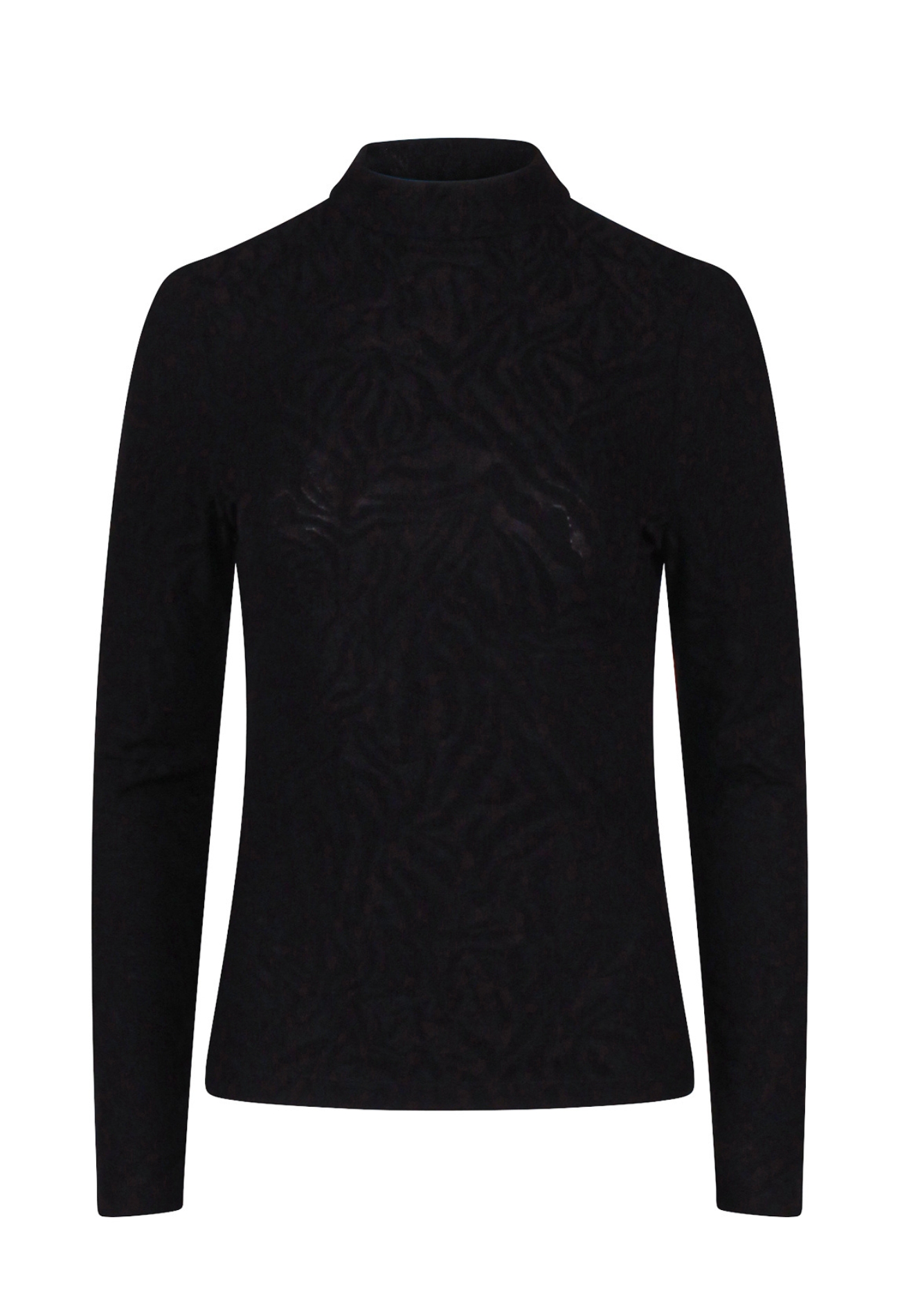 Dit shirt is een aansluitend model en heeft een zebraprint verweven in de stof. Met fijne turtleneck voor de frisse dagen. Dit kledingstuk doet het leuk onder een blazer!