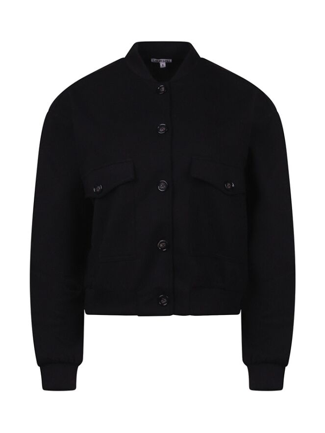Dit vestje in bomber model doet het goed op een jeans, mooie pantalon of rok! Sluit met knopen en heeft twee klepzakken.