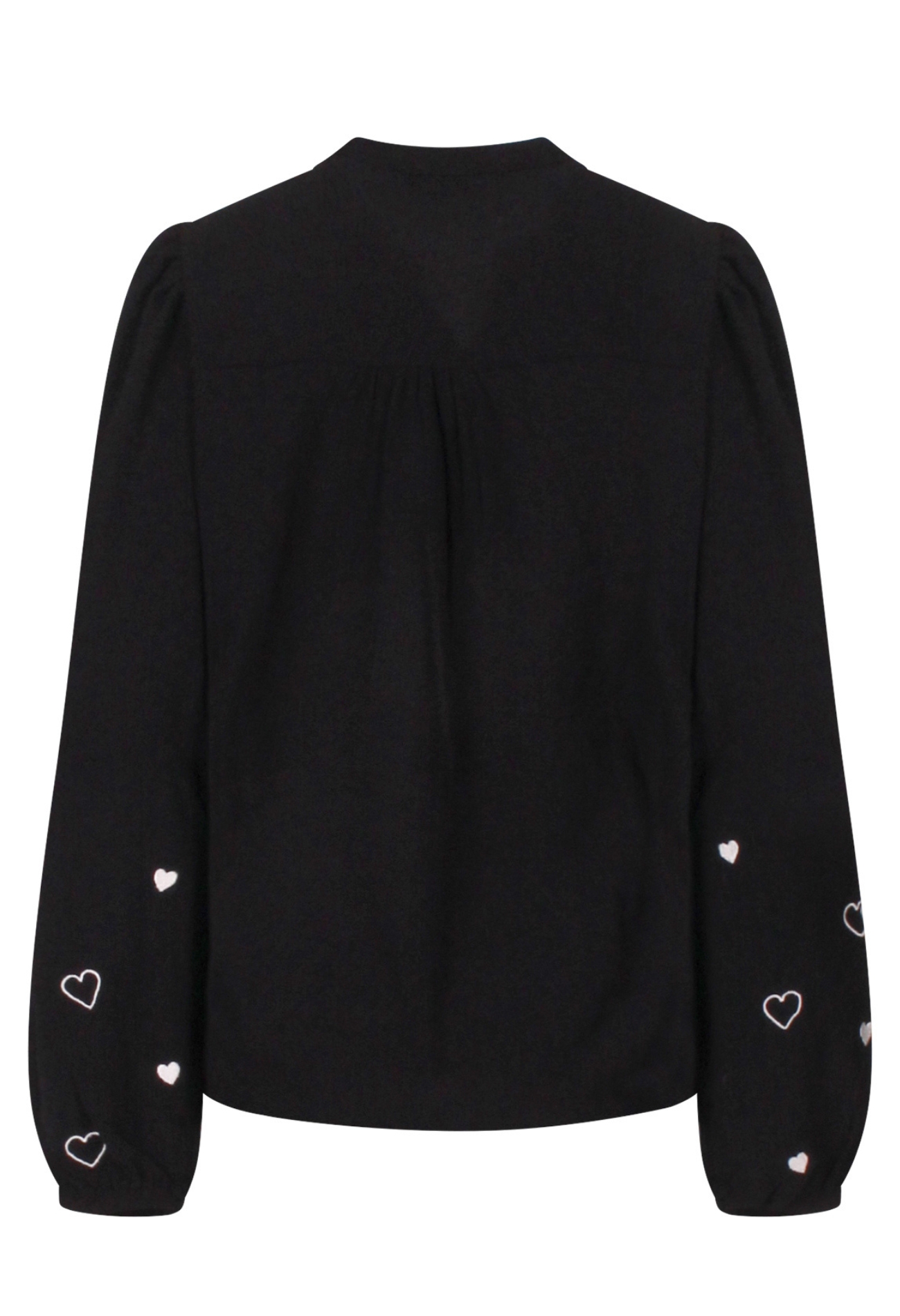 Trendy top van crincle met een kleine V-hals. Deze top heeft een ballonmouw met geborduurde hartjes. Super sweet!