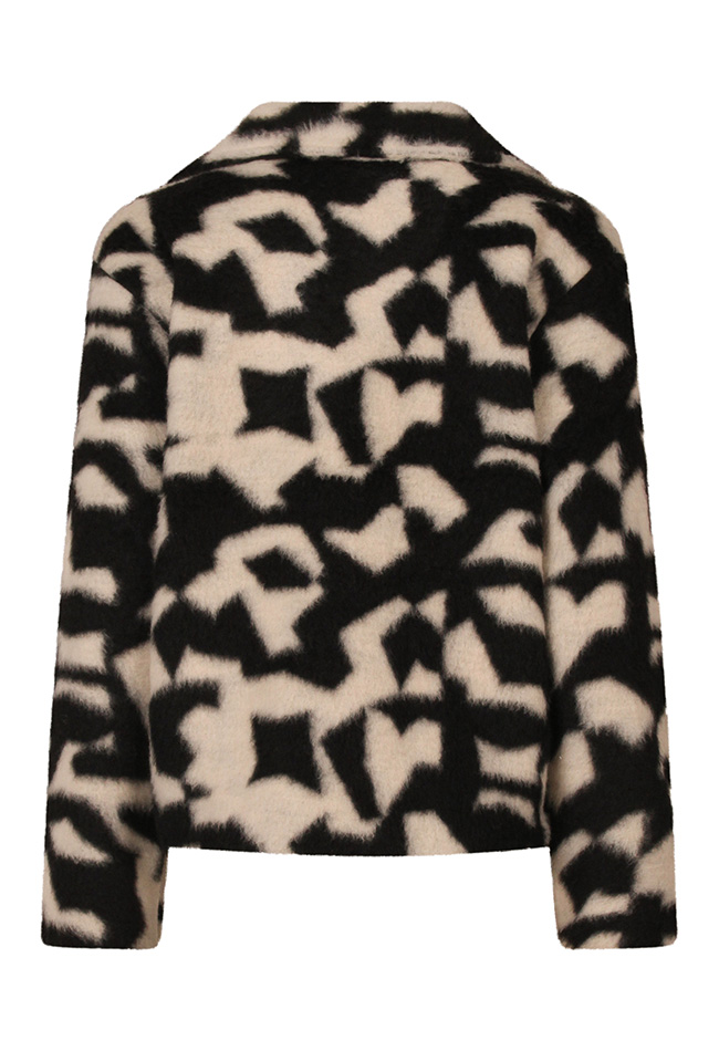 Wollook jasje in een colbertmodel met een grafisch design. Dit jack is nylon gevoerd, heeft twee steekzakken en sluit met knopen. Leuke tussenjas voor een trendy look.