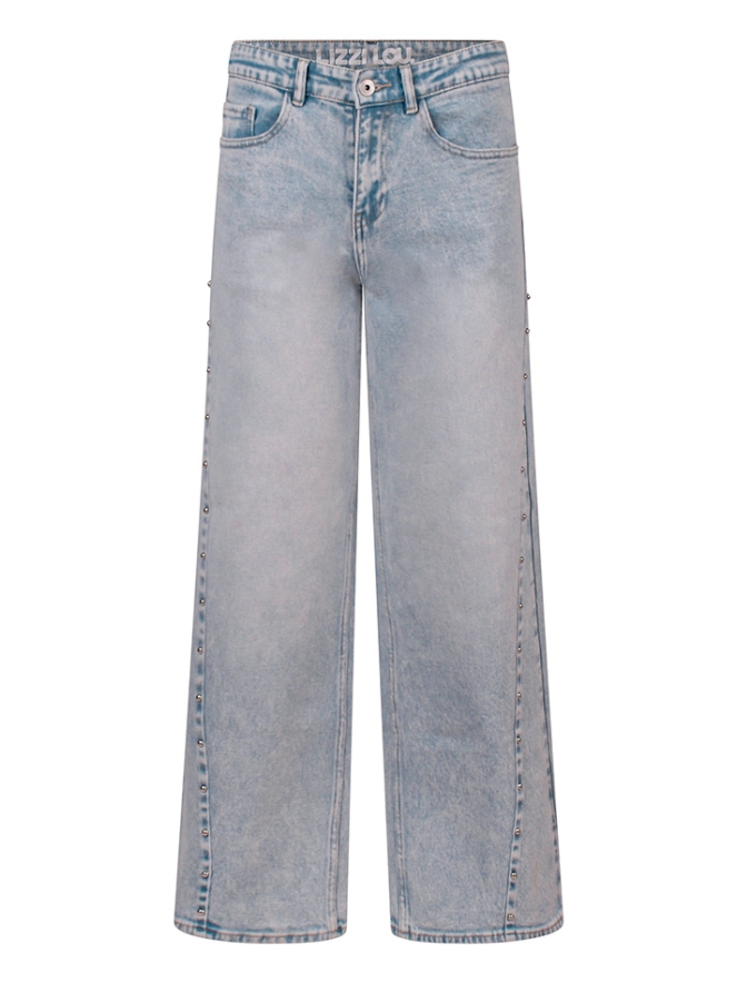 Gek op studs en glimmers? Dan is deze broek met rechte pijp echt wat voor jou! Deze jeans heeft een extra inzet op de zijkant van het been met een rij ronde studs! Een bijpassend spijkerjack met dezelfde studs vind je onder art.nr. Z10059
