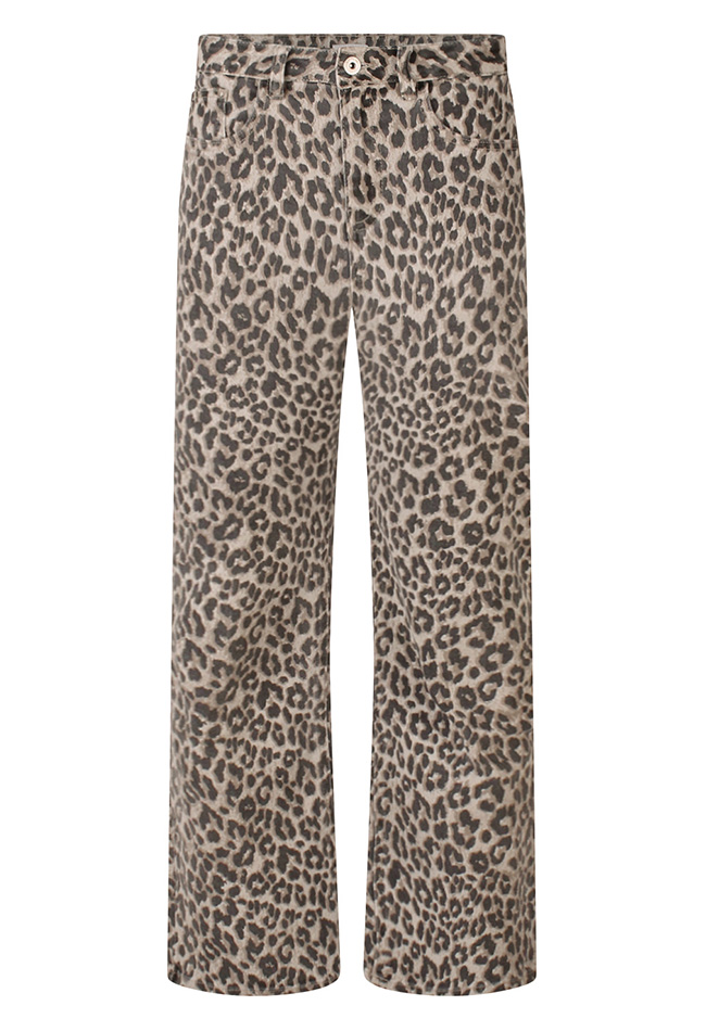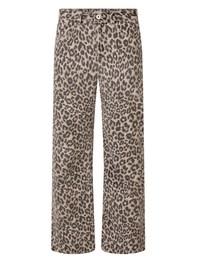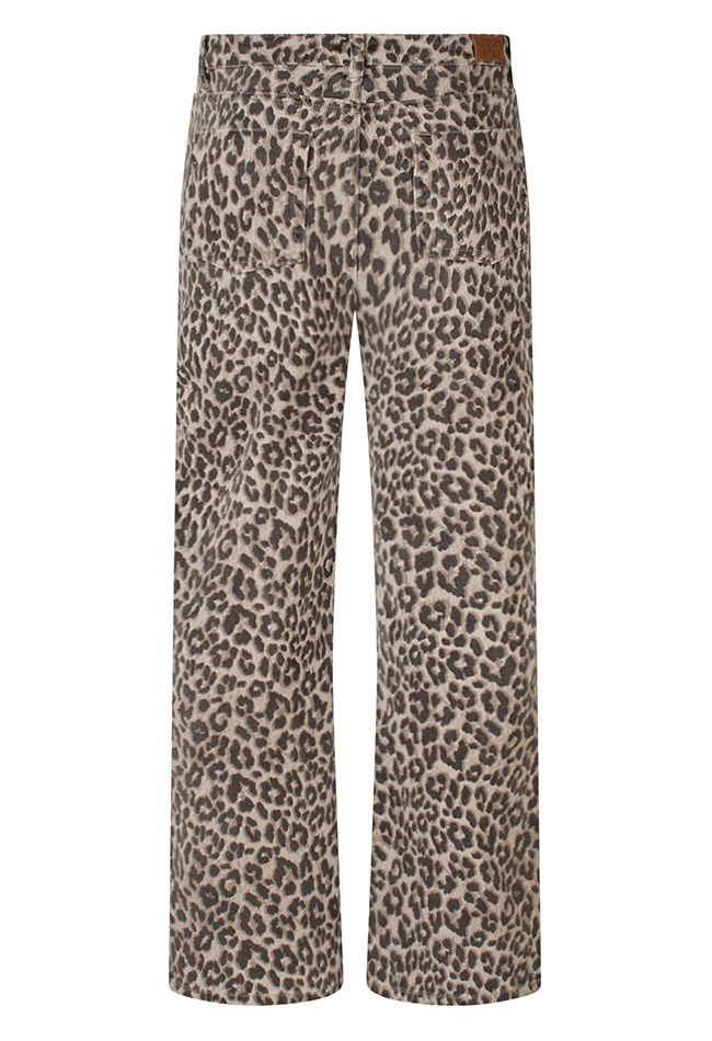 Deze geprinte dames jeans met dierenprint is een echte statement piece. De jeans heeft een wijde pijp die zorgt voor een comfortabele pasvorm en een trendy uitstraling. De opvallende dierenprint geeft elke outfit een speelse en modieuze touch. Combineer met een basic top of blouse en je look is meteen compleet. Perfect voor wie durft op te vallen.