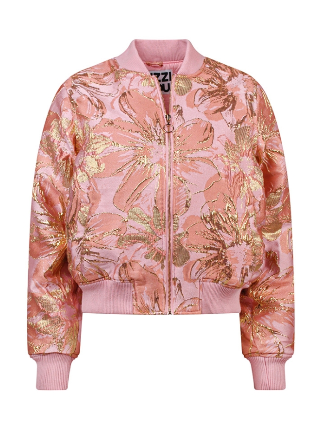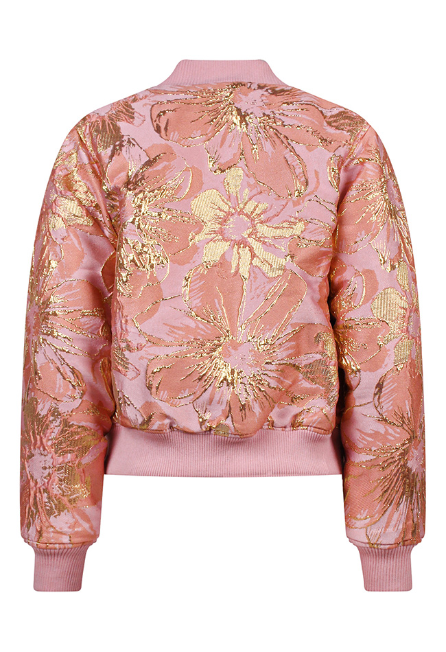 Trendy damesbomberjas met metallic bloemenprint, rits en steekzakken. De jas is volledig gevoerd voor extra comfort en warmte. Combineer de jas met een jeans en sneakers voor een sporty look