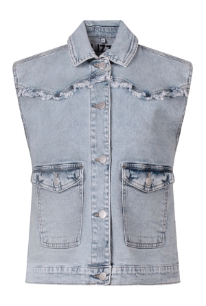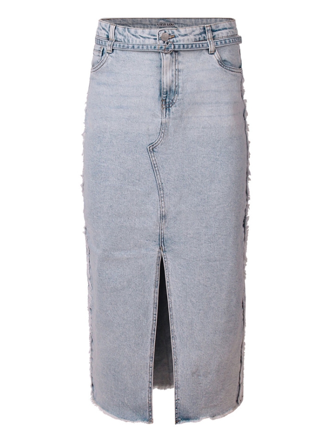Deze lange denim rok is een tijdloze must-have met een trendy twist. Het model is uitgevoerd in stevig denim en voorzien van een klassieke 5-pocket styling. De subtiele rafeltjes aan de afwerking geven de rok een stoere, nonchalante uitstraling. Perfect te combineren met het bijpassende gilet voor een complete set, maar ook eindeloos te stylen met een top, blouse of sweater voor elke gelegenheid.