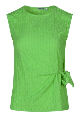 Dames pantalon met een subtiele structuur en een wijde pijp voor een moderne, elegante look. Voorzien van een elastische taille voor extra comfort en een fijne pasvorm.