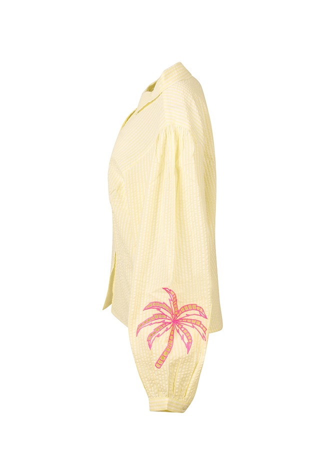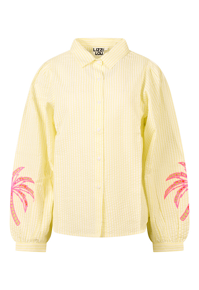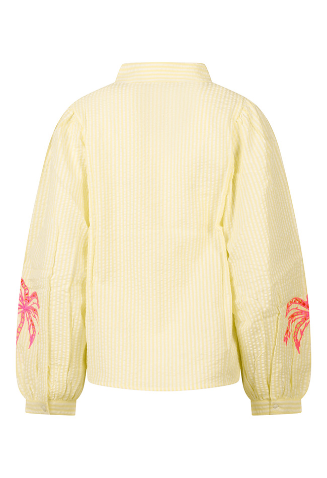 Summer is calling! Deze prachtige blouse is een ruimvallend model met een mooie streep. 100% Katoen en draagt dus heerlijk in de zomer! Met een prachtige neon palm borduring op de mouw.