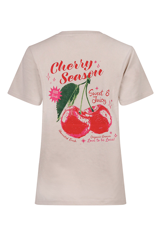 Zoet, speels en helemaal on-trend! Dit T-shirt van Lizzy Lou met de sprankelende Cherry Season print is een echte must-have voor dit seizoen. De vrolijke kersen zorgen voor een frisse en zomerse uitstraling met een knipoog.