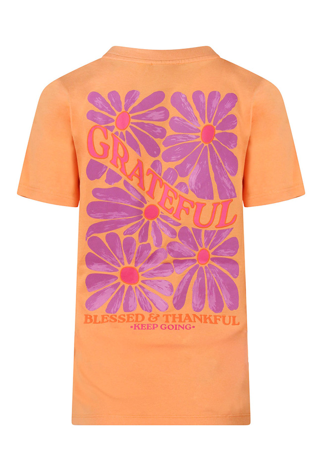 Stijlvol T-shirt van Lizzy Lou met een grote print op de rug. Grateful, blessed and thankful.