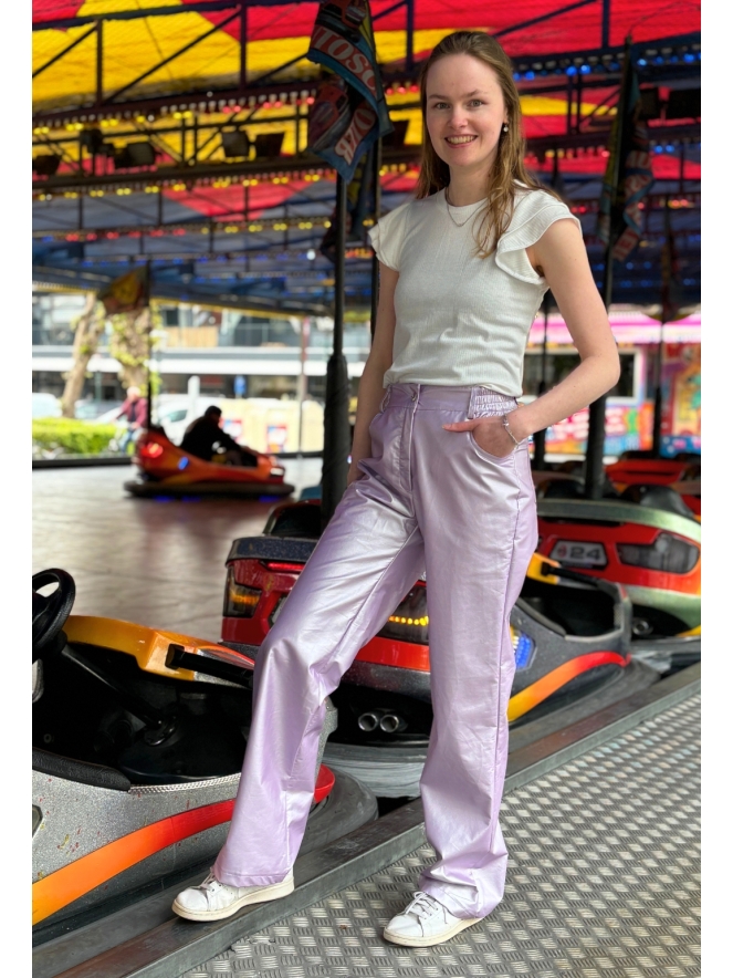 Deze metalic gecoate broek is een 5 pocket model met recht broekspijpen. Dezelfde broek is ook verkrijgbaar voor meisjes van ons merk D-Zine onder art. nr. Z80094