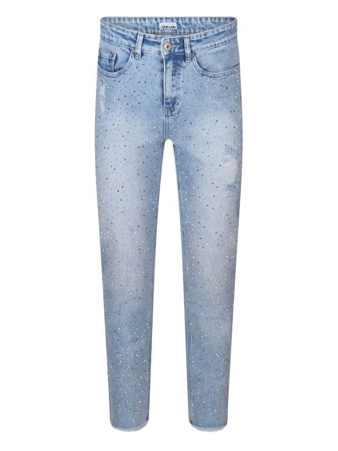Glitterbroek aan en gaan! Deze super gave spijkerbroek vol met zilver kleurige strass stenen is een hot item! De momfit heeft een high waist fit en damaged look opgepimpt met veel strass. Hou je van een complete denim strass look? Kijk dan eens bij art.nr. Z90036 voor het strass gilet of Z90038 voor het strass spijkerjack. Wist je dat we voor meisjes dezelfde items hebben voor jullie twinning look? Go get it!