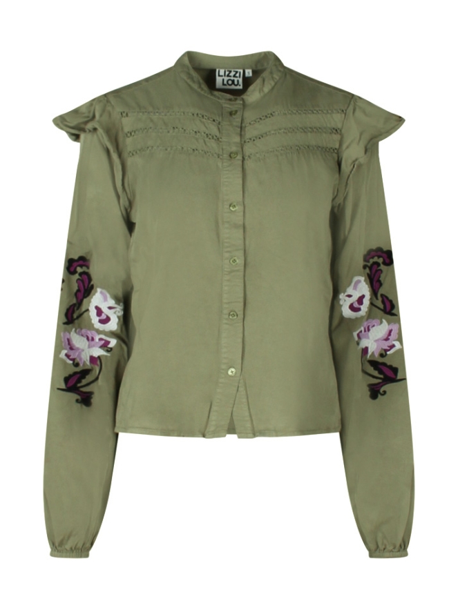 Prachtige blouse van ons eigen jeugdige merk Lizzy Lou met mooi bloemenborduursel op de mouwen. Deze blouse heeft meerdere ingezette transparante lace lijnen. Deze blouse is helemaal hot en on-trend en een ware aanvulling op jouw garderobe deze zomer.