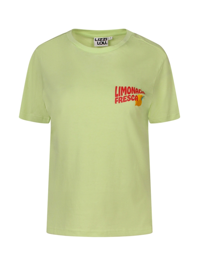 Dit zomerse dames T-shirt van Lizzi Lou uit de 2025 collectie is gemaakt van 100% katoen en biedt ultiem comfort met een ronde hals en korte mouwen. De frisse ?Limonada fresca? print met citroenillustraties op de borst en rug geeft het shirt een speelse, vrolijke uitstraling. Ideaal voor zonnige dagen of feestelijke momenten, met een luchtige pasvorm en een levendige zomerlook.