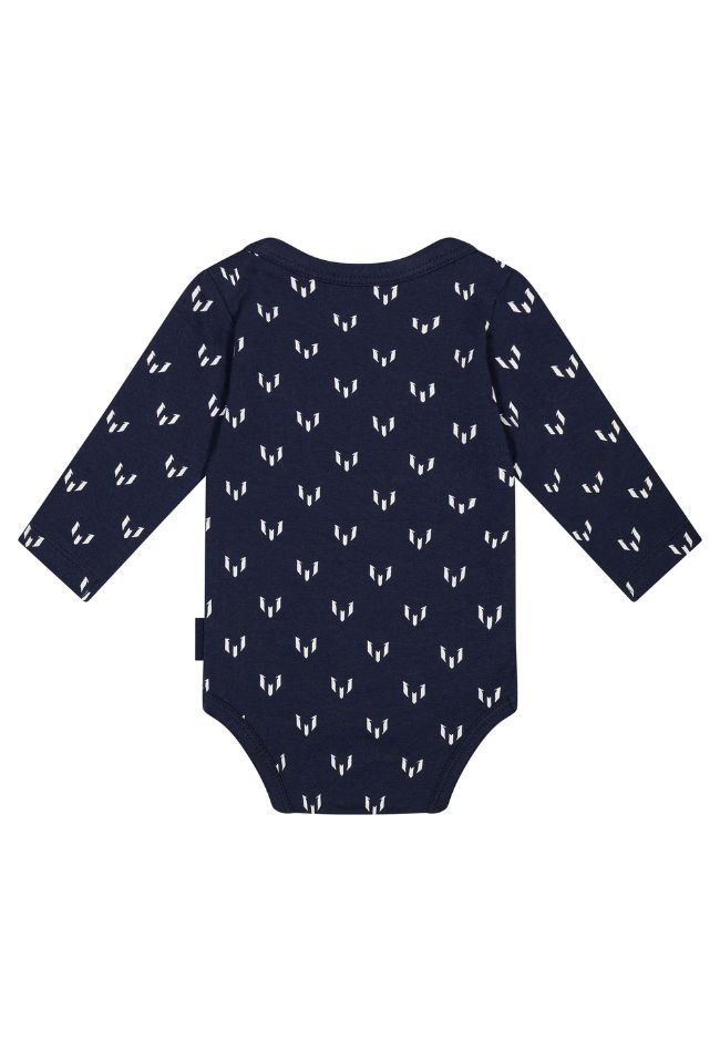 Dit rompertjes heeft een goudkleurige Messi logoprint op de voorzijde. Het logo staat veelvuldig op de romper.