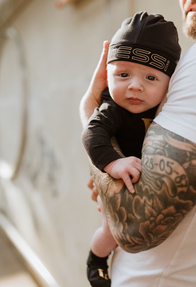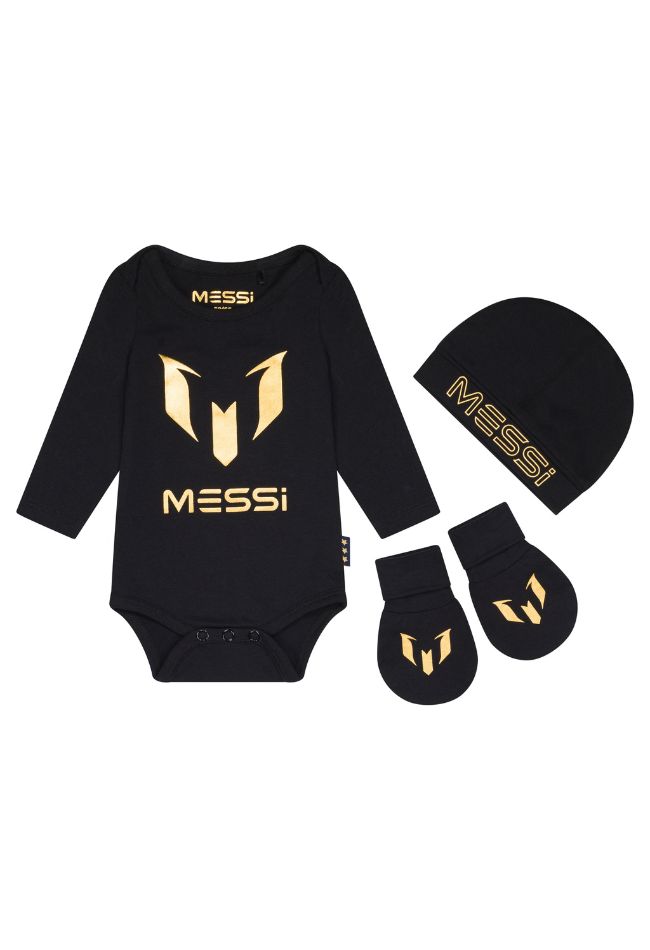Deze stoere Messi romper wordt geleverd als 3-delige set want er zit ook nog een bijpassende muts en handschoenen bij!